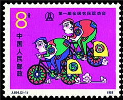 【邮票名称】:《第一届全国农民运动会》——自行车载重比赛