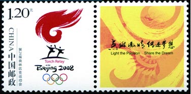 【邮票名称】:第29届奥林匹克运动会火炬接力标志