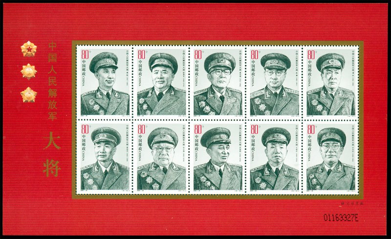 (2)《十大将》邮票是版票,是小版票,也是1套10枚的重量级大套邮票。