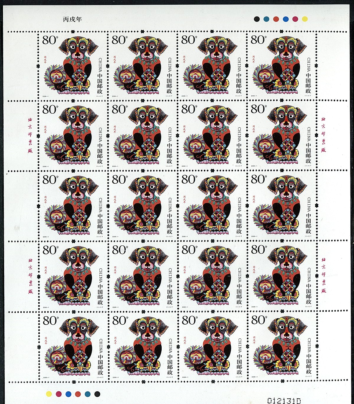 “狗三世”今年穿上了民族服装对襟马甲、鼻子、眉毛和嘴形成了一个石榴图案,蓬松的五彩尾巴卷成寿桃形,两个前爪捧着绣球。这套邮票色彩鲜亮,传统吉祥,为主任看守门户和果实,立意国泰民安、富裕兴隆。