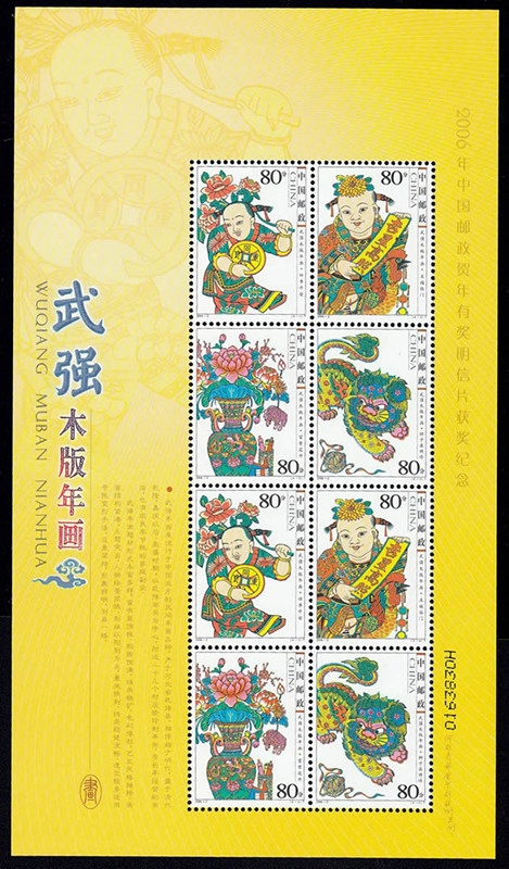 年画文化,与生肖文化一样,同为中国极具民族特色和群众基础的传统文化。中国邮政于2003年起,每年农历小年发行一套以年画为主题的邮票,截至2011年,共发行了9套木版年画系列邮票,《武强木版年画》为其中第4套邮票。