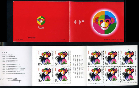 猴子可以说是十二生肖中最聪明的动物,它总是给人一种活泼可爱,聪明伶俐的印象。“甲申猴”是第三轮生肖邮票的第一张。与前两轮猴票相比,显得更为可爱端庄,赋有新意,图案中描述一只憨厚的猴子双手托着仙桃,构图看似简单,细看每一部分都经过精雕细琢,无论颜色,线条都十分优美,猴子显得生动形象,堪称一个经典之作。甲申年猴票出现了许多让人眼前一亮的变化。从票面的设计来看,此次的新猴票采用方型,票幅较以前的生肖票有所增大,画面也从前两套传统的民间艺术风格中脱颖出来,在强调了现代感的同时,还极具卡通味。据了解,为了保证色彩效果,该票使用了专门生产的特制纸张,这在我国邮票印刷史上还是第一次。另外,与以往的普通邮票齿孔不同,这一次采用了六角形的齿孔,印制上还采用了加密的荧光防伪等方法。