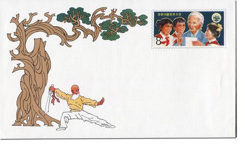 寿命的延长是二十世纪人类的一项重大成就。邮票图案是一位老人向青少年传播经验和知识,老龄问题是一个世界各国共同关注的问题。1982年7月26日-8月6日,联合国召开了“老龄问题世界大会”,讨论如何保障老年人的各种权利和社会福利。1982年9月20日,为了纪念“老龄问题世界大会”的召开,中华人民共和国邮电部发行一套《老龄问题世界大会》纪念邮资封,全套1枚。布纹白纸,纹理竖向。平版。发行量原为10万枚,后因供不应求,又增印了10万枚,共计20万枚。