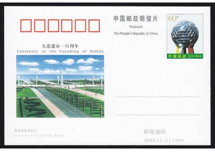 国家邮政局于1999年9月19日发行纪念邮资片一枚,游资图为大连市中心广场的雕塑,片图为大连市海滨市容。