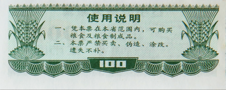 地方粮票是在粮食供应紧张时期,国家为避免不法之徒跨区域倒买倒卖粮票哄抬物价,而允许各省、市、自治区粮食局自行印发的粮票。票面额各地不一,一般有1市两、2市两、5市两、1市斤、2市斤、5市斤、10市斤等几种。各种粮票票面规定的数额均以成品粮计算。本品“1986年辽宁省地方粮票100克”,即诞生于该历史时期,但因特殊原因,已印刷未发行。