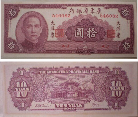 【名 称】 广东省银行大洋票拾元纸币