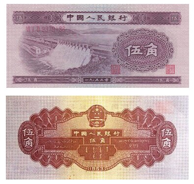 第二版人民币伍角劵(在收藏界俗称“水坝伍角”)发行于1955年3月1日,1974年起只收不付,在1999年停止流通。此版水坝5角无水印券是新中国各版人民币中继1角背绿水印、1角枣红、1角背绿无水印、平水伍角之后的又一个角劵珍品新秀。