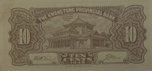 【藏品名称】 广东省银行大洋票壹角纸币