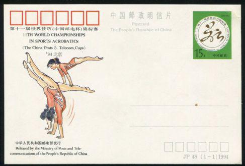 【纪念邮资片】 JP48 第十一届世界技巧(中国邮票杯)锦标赛