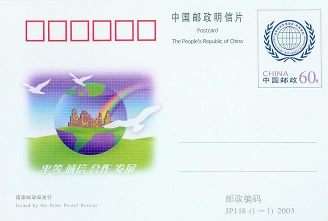 为热烈庆贺和永久纪念“世界经济发展宣言”系列活动在中国珠海举行,国家邮政局决定于2003年11月6日发行《世界经济发展宣言》纪念邮资片1套1枚。