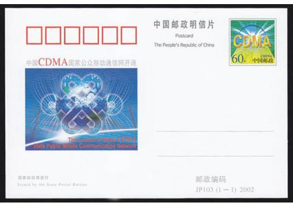 【纪念邮资片】 JP103 中国CDMA国家公众移动通信网开通