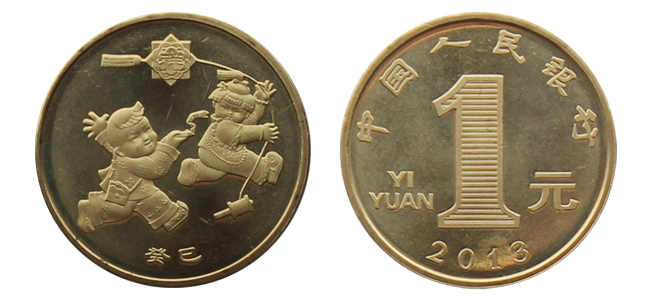 【正面图案】正面刊“中国人民银行”、“1元”和汉语拼音字母“YIYUAN”及“2013”年号。