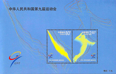 国家邮政局发行2001-24《第九届全国运动会》纪念邮票一套2枚,小全张1枚,采用胶版印刷。此外,国家邮政局还于同年2月10日发行《中华人民共和国第九届全国运动会吉祥物》普通邮资明信片1枚。目前《九运会小全张》的市场参与度较低,未来升值空间较大,将吸引较多收藏爱好者关注。