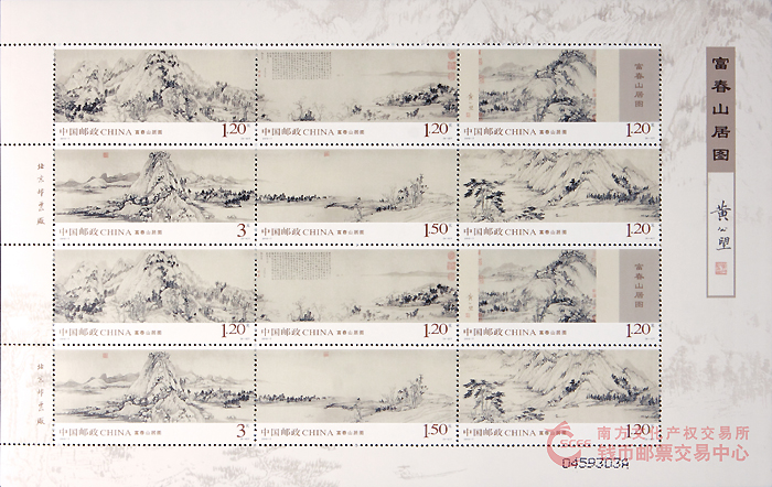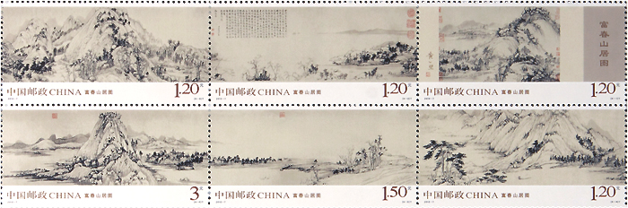 中国邮政定于2010年3月20日发行《富春山居图》特种邮票1套6枚。