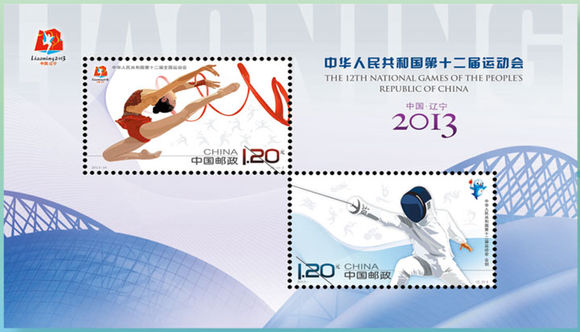 发行全运会纪念邮票的历史最早可以追溯到1959年,而这次为了庆祝第十二届全运会在辽宁省举行举办,中国邮政于全运会2013年8月31日的开幕当天发行《中华人民共和国第十二届运动会》邮票一套,全套邮票两枚,面值均为1.20元,另发行小全张,售价3.60元。邮票由王虎鸣、李志宏共同设计,邮票规格50×30毫米,整张12枚。