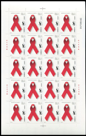 艾滋病的医学全名为“获得性免疫缺陷综合症”,它是人类免疫缺陷病毒引起的。艾滋病病毒侵入人体后破坏人体的免疫功能,使人体发生多种难以治愈的感染和肿瘤,最终导致死亡。1988年1月世界卫生组织确定每年的12月1日为世界艾滋病日,以此来提高国际社会对艾滋病的认识。世界各国和国际组织在这一天举办相关活动,宣传和普及预防艾滋病的知识。为此,国家邮政局发行《爱心红丝带》邮票予以纪念。