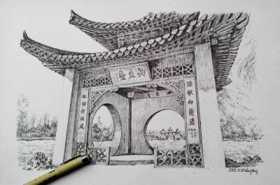 五亭桥 首个扬州古建筑钢笔画作品