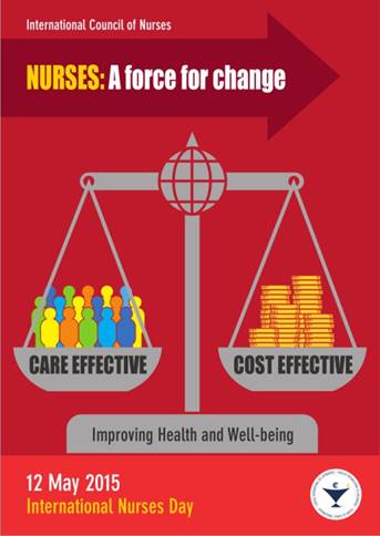 每年皆有主题活动来庆祝节日,2015年国际护士节主题:“护士:变革的力量,高效护理与医疗”。主题海报形象为一个天平,以地球为中心,一端是拥挤的人群,一端是成堆的硬币,海报寓意护士是使天平两端(高效护理与医疗成本)达到平衡的重要力量。