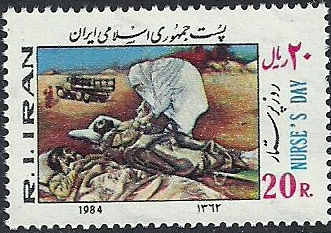 第二枚为伊朗1984年发行的20里亚尔面值的护士节邮票。