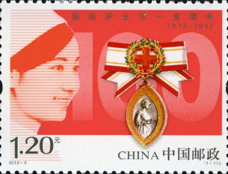 中国邮政2012年5月12日发行的面值1.2元的《国际护士节一百周年》。