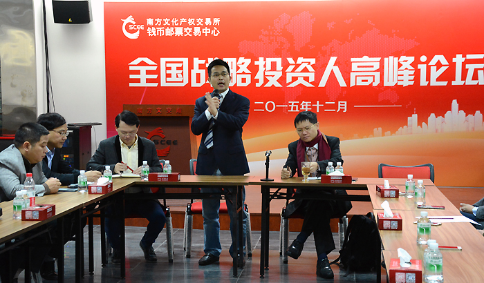 为促进钱邮线上交易市场的可持续发展,规划行业市场的未来发展方向。2015年12月13日,南方文化产权交易所钱币邮票交易中心(以下简称“南方钱邮中心”)在广州承办了以“稳定市场 凝心聚力 促进行业健康发展”为主题的全国战略投资人高峰论坛,南方文化产权交易所(以下简称“南方文交所”)总经理张志兵,交易总监曾德锋,南方钱邮中心总经理江则昊,副董事长孟剑伟等领导皆出席了本次会议。
