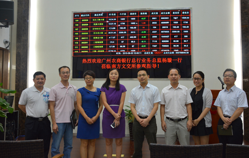 2015年8月20日,广州农商银行总行业务总监杨璇一行莅临广东省南方文化产权交易所进行了合作交流。