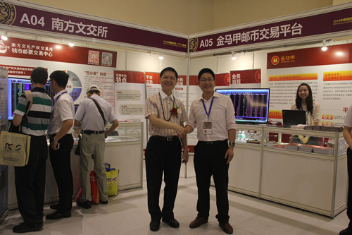 南方文交所钱邮交易中心总经理江则昊先生与金马甲邮币交易平台市场部经理合影