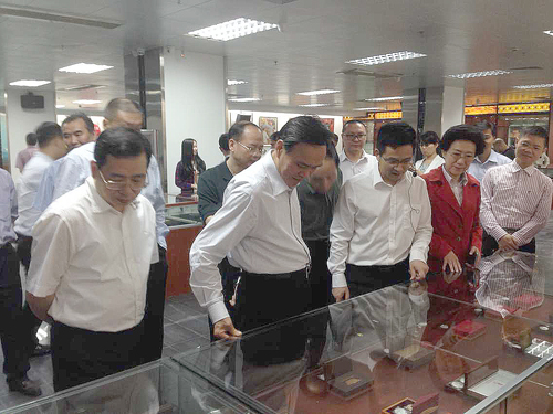 各位来宾在南方报业传媒集团总经理、南方文交所董事长黄常开的陪同下分别参观了一楼的钱邮展示厅,三楼的多功能展示厅,随后与南方文交所有关领导进行面对面的交流,就我国文化产业发展,文交所发展经验,“互联网+”的发展模式等话题进行深入探讨。