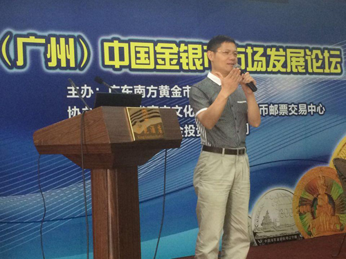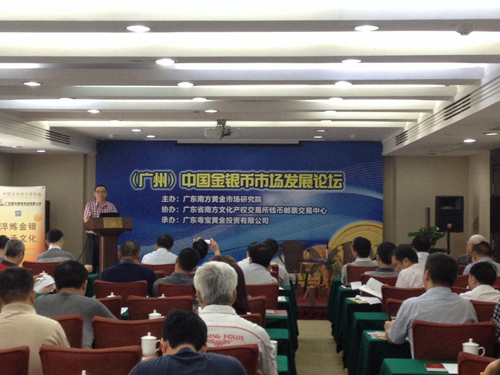 由广东南方黄金市场研究院主办、广东省南方文化产权交易所钱币邮票交易中心(以下简称“本中心”)协办、广东粤宝黄金投资有限公司承办的(广州)中国金银币市场发展论坛于今日在广州金苑山庄举行。本中心主任江则昊和南方文交所交易部总监曾德锋受邀出席本次活动,和来自全国各地的十多家中国金币特许零售商代表及活跃在中国金银币研究领域的专家学者、钱币爱好者共70多人一同见证了中国金币发展的又一里程。