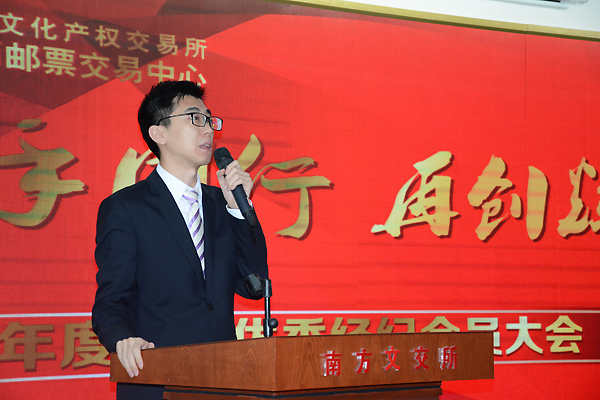 随后,南方钱邮中心总经理江则昊先生对平台2015年度的工作作出总结,他首先肯定了平台在2015年度的工作成绩,表示经纪会员在其中起到了重大作用,感谢他们在一年中的辛勤工作。