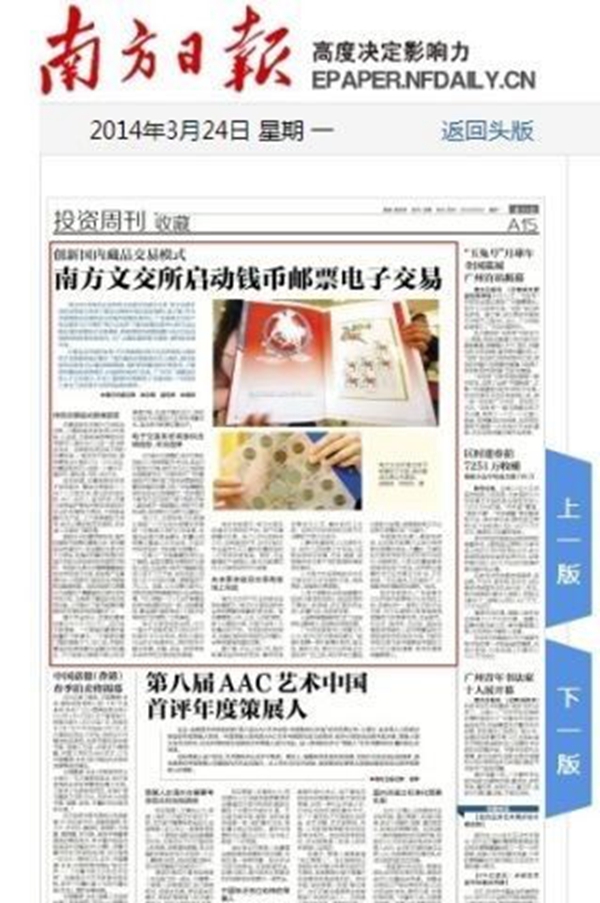 广州市宝泉钱币公司黄文杰认为,电子化的交易早该普及,“能像炒股票一样炒邮票炒钱币,继北京、南京之后,南方文交所电子交易系统一旦上线,将引领本土藏品交易的大变革,使得借助电子平台这种交易模式在广州盛行。”