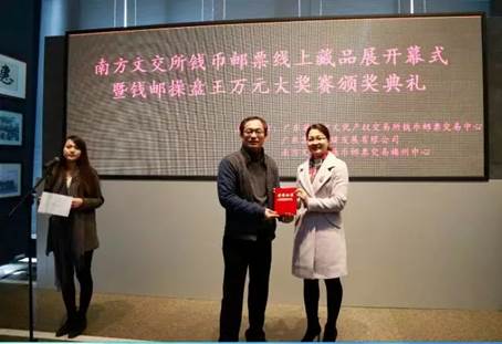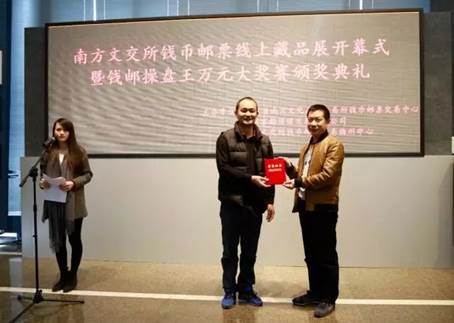 今天在亮胜艺术中心迎来了南方文交所钱邮交易电子盘的线上藏品展的开幕式,并为第一届钱邮操盘王获奖者颁奖。