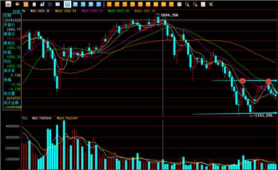市场下跌力度有所减弱,成交量也呈现减少的迹象,充分证明市场目前没有较多的抛盘,预计后期会展开反弹行情,大家需耐心等待。