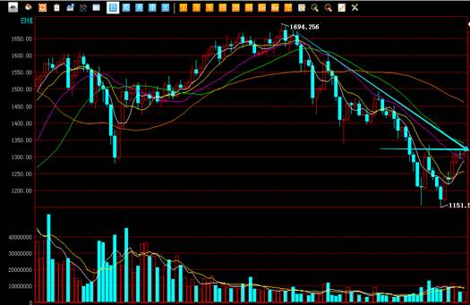 后期的操作策略:下方技术点位建议大家关注1157.09点,因为12月5日,到达此点位后开启了强力反弹,5日在此点位是强力支撑,随后的7日更是强力上涨,11日,12日在此点位区域触底反弹,所以此点位是一个坚固的支撑点。上方技术点位建议大家关注1334.00点,因为在8日到达此点位后市场即开始强力下挫,并且一路下探不断创出新低,充分证明此点位压力巨大,并且昨日也在此点位区域附近遇到了压力,今日再次在此点位区域附近出现了停顿,所以明日到达此点位后如出现停顿可逢高出货。
