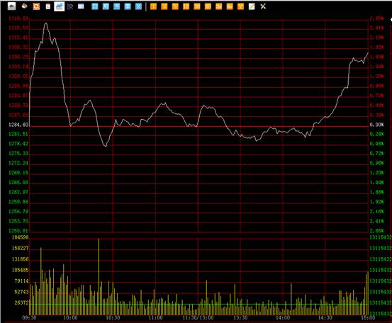 南方所综合指数今日平开1284.60点,上涨22.34点,涨幅1.74%,换手率7.27%,最终收盘1306.94点。今日开盘后即展开大幅上涨,甚至一度涨到1318.54点,但是随即快速下跌并且跌破开盘价,一度下探到1277.65点,后市全天几乎延续这种震荡的态势,直至14:20行情再次展开拉升,尾盘半小时拉升力度大,动能足,明显是主力行为充分证明主力拉升意愿强烈,广大投资者可积极操作。