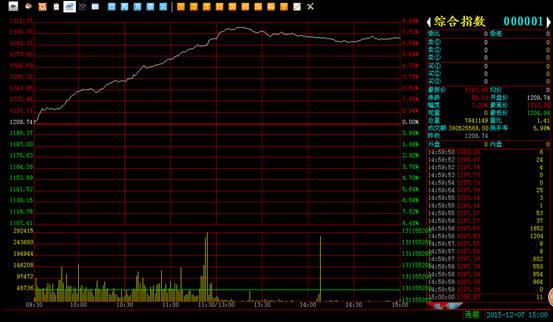 大盘综合指数收于1297.98,涨88.24点,涨幅7.29%,成交额3.80亿元。本周第一个交易日,大盘终于止住了近两周的震荡下跌之旅,开启上攻。上周六大盘触底反弹,虽然在尾盘略有回落,但也依然没有挡住今日大盘上攻的力度,从今日大盘个品普遍涨停的情况来看,短期底部已经基本确立,后市应还有高点。南方盘面今日走出了反弹应有的样子,开盘直接开始上攻,盘中几乎没有回头,到达高位以后能够强势稳住不发生回踩直到收盘,这样的表现将笼罩了市场近半月的低迷情绪一扫而空,市场开始活跃,信心将会在后续慢慢恢复,大盘从现在看起中期趋势虽达不到一路上行,但是保持稳定还是没问题的。