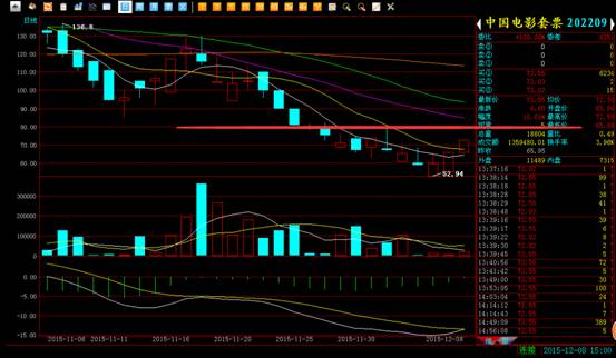 从上图可以得知,中国电影套票继续上行较强阻力位在80.00一线,接近该位置适当减仓。