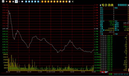 盘面概况:大盘综合指数收于1259.68,跌38.31点,跌幅2.95%,成交额4.93亿元。早盘开盘延续昨日大涨之势继续上行,综指一度摸高到1331.44,最大涨幅近2.58%,随后即遭遇获利盘的打压而快速回落,多方没能形成有效的抵抗,大盘短期整理之势快速凸显,之后大盘也是一路震荡下行,盘中形成了几波小的反弹,但是最终也是由于继续做多信心不足导致后继乏力而宣告回落,最终大盘以下跌近3%报收,短期转入整理。