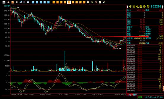 从上图我们可以看出,中国电影套票已经到达高点阻力位置,建议明日及时锁定利润出局,短期后市转入观望。
