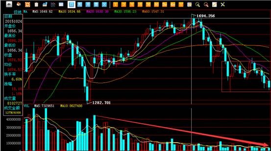 后期的风险防范问题:上方技术点位建议大家关注1475.25点,市场11月16日,21日,24日到达此点位后都出现了大量的抛盘,尤其24日到达此点位后更是一路强力下跌,目前仍没有反弹的意愿,所以此点位有效并且可靠。下方技术点位建议大家关注1337.96点,因为11月12日市场强力下跌过程中在此点位获得了强有力的支撑,并且随后展开了反弹行情。所以综上所述:此点位支撑有效,如果后期市场到达此点位大家可以考虑建仓。