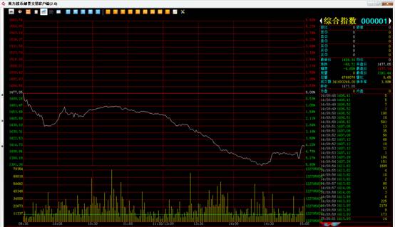 今日南方文交所综合指数开盘1477.05点,最高触及1477.18点,最低下探1391.44点,最终以1408.34点收盘,跌幅4.65%。成交量3.4亿,成交量继续减少。早上开盘之后还是表现无力,承接昨天弱势状态,继续向下运行,随后陷入短时整理,下午开盘后,行情一路下移,盘中并一度跌破1400关口,至收盘前略有反弹,再次收于1400点上方,全天仍是以中阴线收盘。技术面上看,成交量有所减弱,均线继续空头发散, MACD运行于0轴下方, KDJ指标死叉转下,短期恐将继续弱势状态,在下跌趋势前提下,建议投资者谨慎而为,等待企稳反弹。