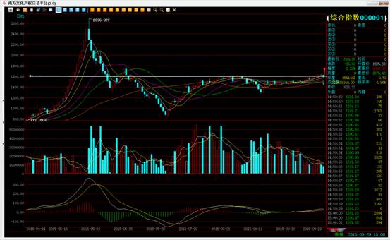 从技术上看,今天收盘跌破1600点,短期若不能有效夺回1600点的话则还有继续向下的可能。造成今日下跌的原因是多方面的,首先外部金融市场出现下跌,上证指数和欧美各国股市走势均不理想。其次,今日南方所出入金方面出现问题,在一定程度上影响了市场的情绪,再次,每逢临近长假时市场的交投总是相对清淡,交投都不十分活跃,长假效应比较明显。