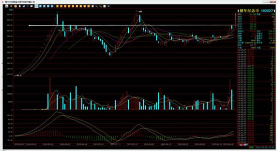 建议投资者继续关注猪年纪念币,该品种突破450元以后,短线盘整,后市向上概率依然很大。