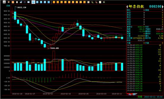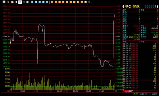 上图是综合指数的表现,尾盘银币拉升导致上攻,笔者上面也说过了,并没有什么实际意义,我们要看到大盘的真实状态。