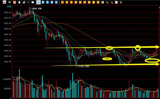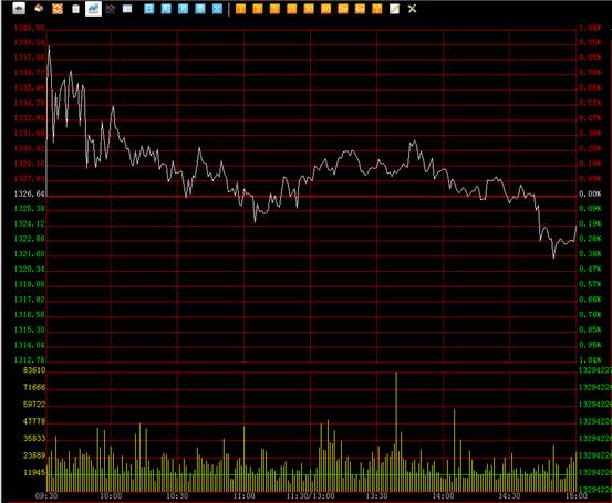 技术形态分析:综合指数技术形态上形成了受挫的形态,盘中市场强力下探并且连续创出新低,最低点一度到达1321.13点,全天强势下挫,价格始终低位震荡全天无任何反弹迹象,收盘后日线呈现一个中阴线。