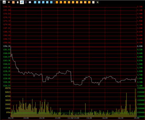 南方所综合指数技术形态分析:综合指数技术形态上依然是下跌的行情,盘中市场强力下探并且连续创出新低,最低点一度到达1224.27点,全天强势下挫,价格始终低位震荡全天无任何反弹迹象,收盘后日线呈现一个中阴线。