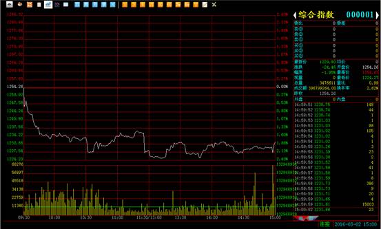 盘面概况:大盘综合指数收于1229.80,跌24.46点,跌幅1.95%,成交额3.96亿元。大盘今日开盘直线下行,昨日的震荡红盘没能起到企稳作用,这一点确实是让笔者感到费解,笔者不禁要想大盘开盘就跌的动机在哪?说实话大盘今天的走势有点莫名其妙,一路震荡下行直至收盘,盘中无任何反弹,整体表现非常弱势,如果说是延续前期下行趋势那也不该这样毫无抵抗的就大跌1.95%,而且还是在业内整体环境不错的情况之下,如果是这样的话,那么短期后市将再次难以有好的操作机会,继续震荡探底的可能较大。