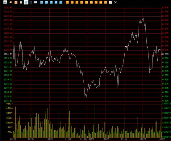 南方文交所综合指数今日开盘1224.73点,下跌-0.58点,跌幅-0.05%,收盘价1224.15点,换手率2.78%。今日开盘后行情即宽幅震荡, 11:19分后行情直接跌破开盘价下挫至1214.66点,期间行情相当凶险,市场恐慌情绪严重,行情终于在11:29分开始触底反弹,下午虽有所拉升但是对全天的格局无大影响。全天呈现的是强烈震荡的形态,证明市场现阶段的主力和广大投资者没有对方向形成一致的看法。