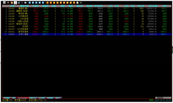 截止收盘,综合指数收于1262.40点,下跌5.89点,跌幅0.46%,成交额3.389亿,其中51只品种上涨,无涨停;88只下跌,1只跌停;1只平盘;今日综指开盘小幅拉升,随后震荡下行,十点后,指数展开窄幅震荡整理,午后,指数一度继续下探,尾盘在钱币指数及金币指数的反弹下,指数走出一波小拉升,跌幅收窄,直至收盘,指数小幅回调。K线形态上,收十字小阴线,围绕60日均线展开反复争夺,成交量继续缩小,指数下跌也有所趋缓,连续三天收于下方1250的支撑位之上,是指数短期底部的标志,可逢低参与活跃品种,短线轻仓参与为主!