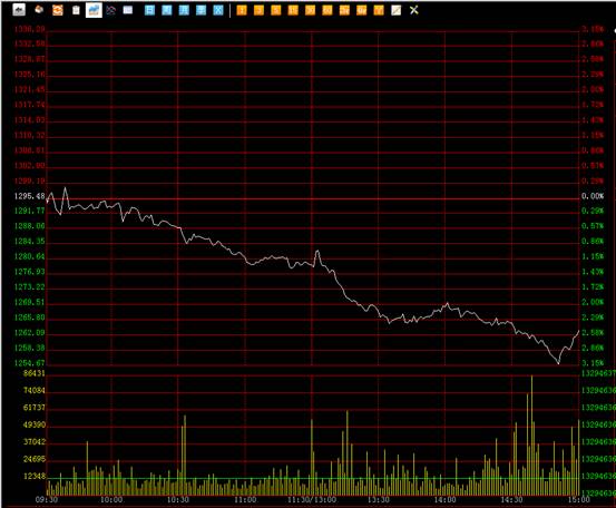 南方所综合指数技术形态分析:综合指数技术形态上形成了下跌的形态,盘中市场强力下挫并且连续创出新低,最低点一度到达1261.65点,全天一路下探,价格始终低位震荡全天无任何反弹迹象,收盘后日线呈现一个大阴线。